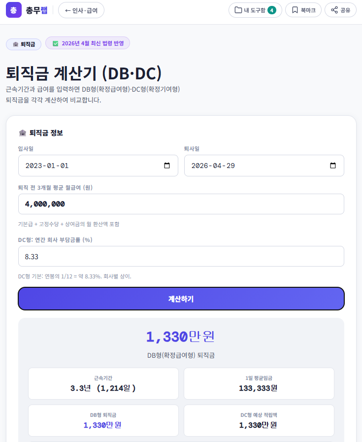 3. 복잡한 산식, ‘총무랩’ 퇴직금 계산기로 종결하세요
