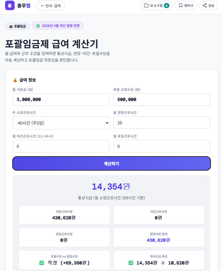 ▶ 포괄임금제 급여 계산기 : https://chongmulab.co.kr/tool-65.html